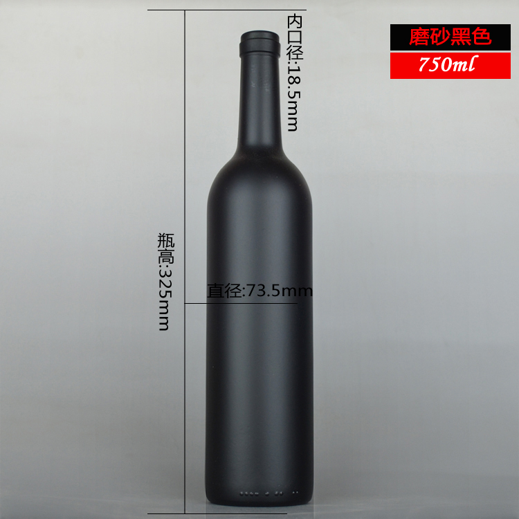 750ml 磨砂黑紅酒瓶葡萄酒瓶
