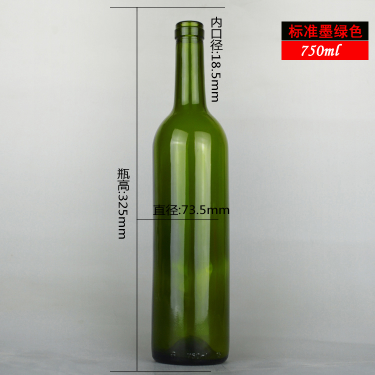 750ml 翠綠色紅酒瓶葡萄酒玻璃瓶