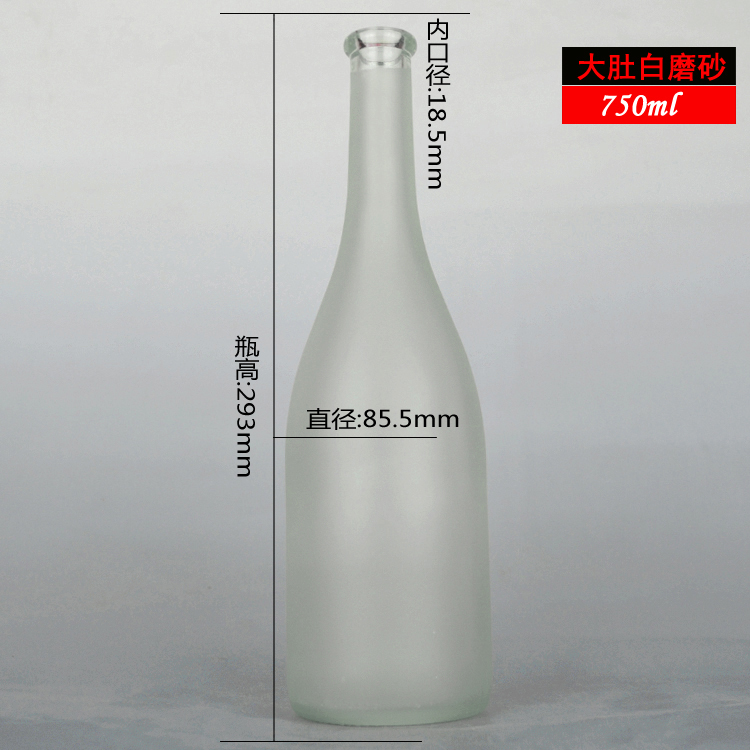750ml 蒙砂大肚反口紅酒瓶 葡萄酒玻璃瓶